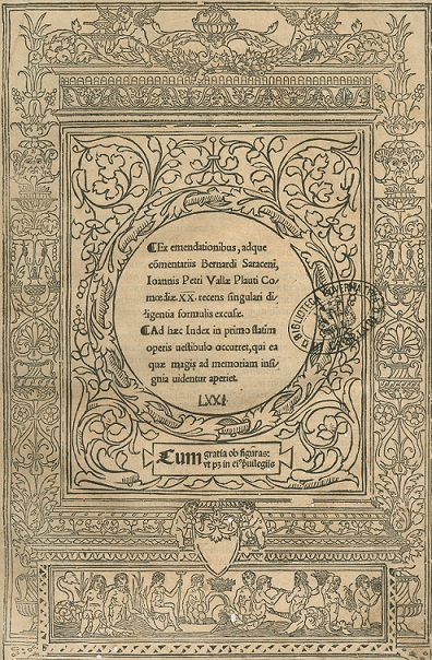 - <Fig.1> <Plauti comoediae XX, Venezia, 1511, frontespizio>