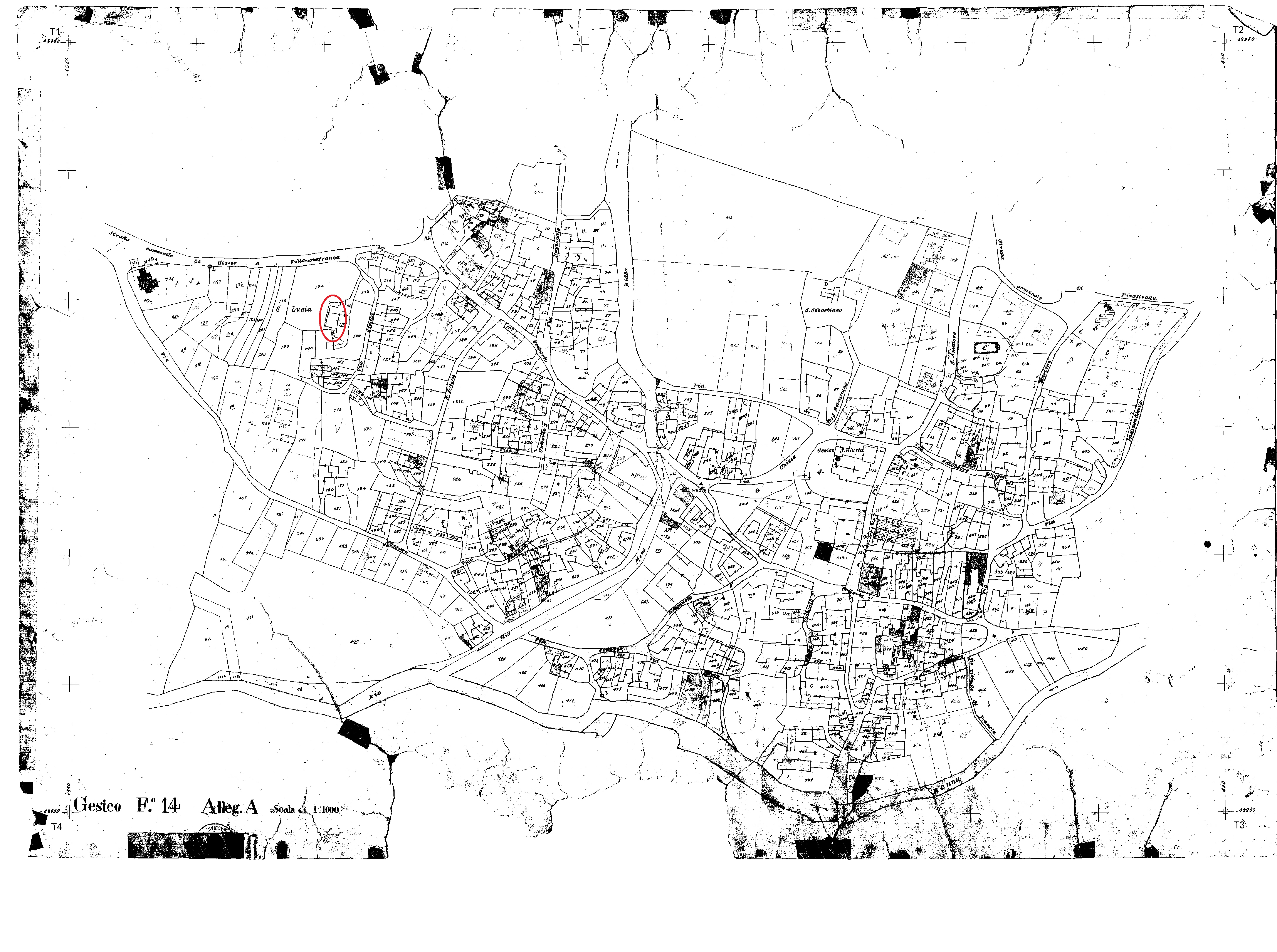 - Fig. 4- Localizzazione dei ruderi della chiesa di Santa Lucia nei mappali