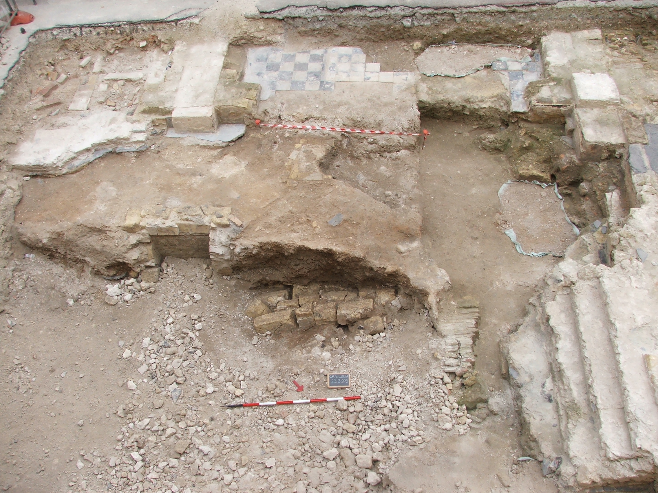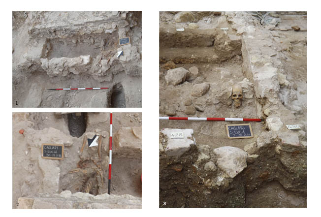 Abstract: The purpose of these lines is look back at some of the events that have marked the beginning of project preparation and of the archaeological research, in October 2011, lasting in 2014. The area is presently fenced with modern railings which roughly follows the outline of the church’s last construction phase, the NE elevation being the best preserved one. This excavation campaign provided us with relevant information for the drawing of the reconstruction of phases of the church at different depths. Santa Lucia dig has returned some graves almost intact, but with very poor and dissociated grave goods (metallic objects from the wooden coffins and from the corpse clothes or goods), found in Postmedieval burials; fragmentary evidence of floors and plaster dating between 17th-18th centuries AD (glazed tiles from the Iberian Peninsula (azulejos) and the majolica ones, floors of slate and brickwork. During the work in progress dissemination of news and events now makes it possible to have a great deal of attention by citizens, students and scholars. The choice of a site open, transparent and in open dialogue with all, has multiplied the power and charm of the site. At the end, we propose some notes about the role of the church in the town and about the possibility that under the actual ruins is the oldest building, known from the 11th century.