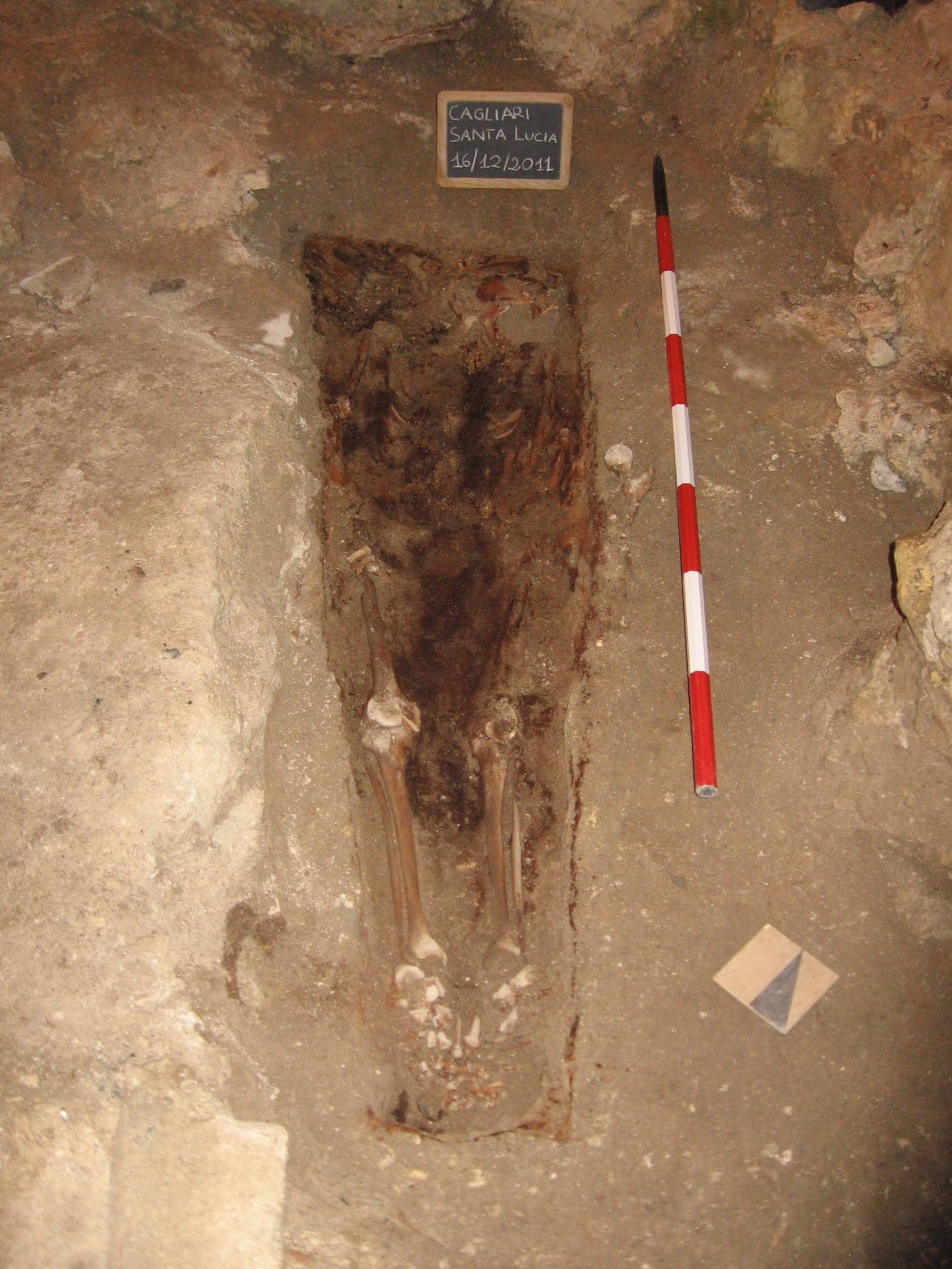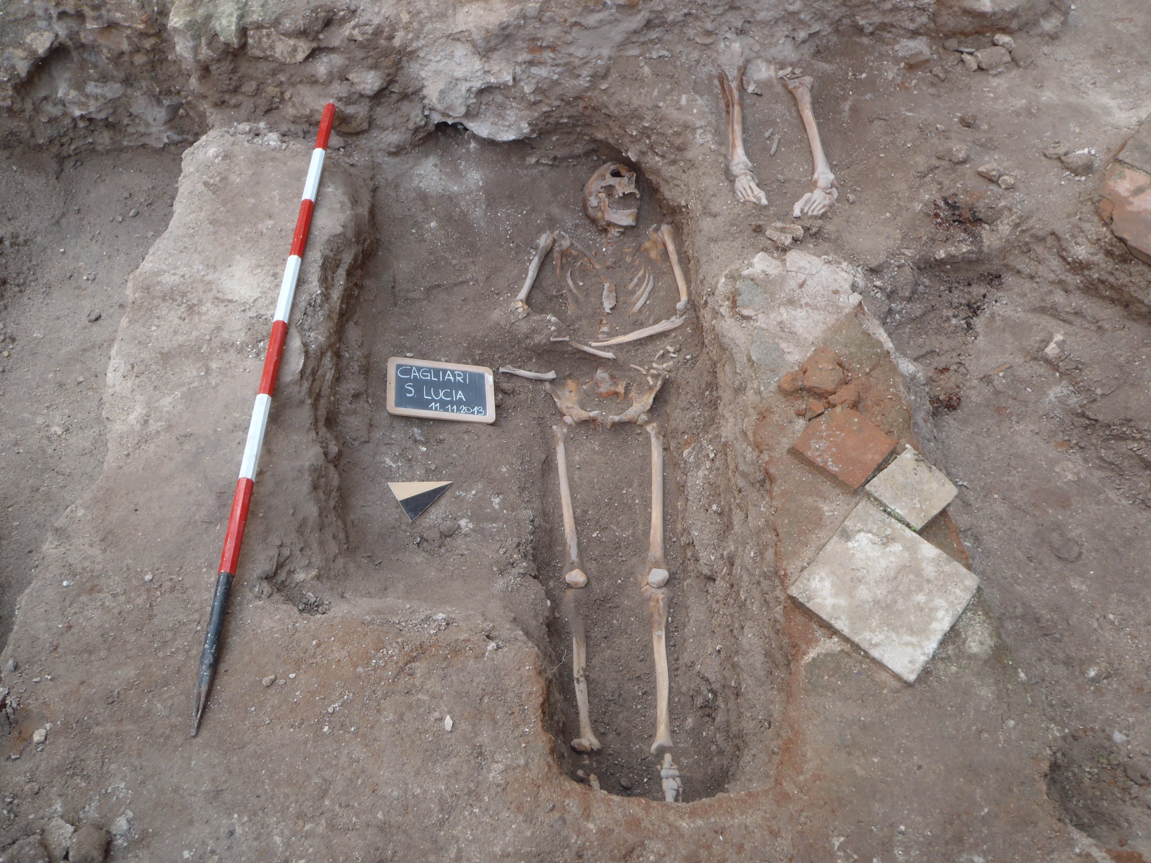 Riassunto: Il contributo ripercorre alcune delle vicende che hanno caratterizzato la preparazione del progetto di ricerca storica e archeologica sulla chiesa di S. Lucia nel quartiere della Marina a Cagliari, avviato nel 2011 e proseguito sino al 2014. L’area d’interesse è racchiusa entro una moderna cancellata, che ricalca grosso modo il perimetro dell’ultimo impianto della chiesa, di cui si conserva in elevato la porzione nord-orientale. I dati scaturiti dalle indagini consentono di ricostruire le vicende storiche e architettoniche della chiesa. Lo scavo ha finora restituito alcune sepolture pressoché intatte di età postmedievale, con corredo funerario povero e disarticolato (oggetti in metallo in uso sia nella cassa lignea, sia come accessori del vestiario del defunto o in accompagnamento); brevi tratti delle pavimentazioni e dei rivestimenti messi in opera nel XVII e XVIII secolo (azulejos e mattonelle maiolicate e in cotto, lastre di ardesia). La scelta di un cantiere aperto, trasparente e in continuo dialogo con tutti, mediante la diffusione di notizie ed eventi, è legata al sito web. Infine, si propongono alcune considerazioni sul ruolo della chiesa rispetto alla città e qualche ipotesi in merito all’identificazione con l’antica chiesa omonima citata dai documenti dall'inizio del XII secolo.